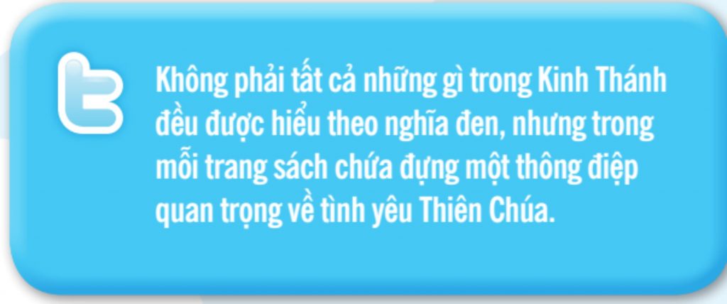 Tất cả những câu chuyện và hình ảnh trong Kinh Thánh đều do sự linh hứng của Thiên Chúa và mang những thông điệp quan trọng cho ta. Ngay cả những câu chuyện như việc Thiên Chúa tạo dựng nên trời đất (St 1, 1-2, 4), xây tháp Baben (St 11, 1-9), không diễn tả cách chính xác những gì đã xảy ra thì sứ điệp căn bản vẫn thật sự đúng. Luôn có đó một nguy cơ về sự kiêu căng của con người khi ta nghĩ chính mình có thể ngang hàng với Thiên Chúa, một nguy cơ được minh chứng qua việc xây tháp Baben. Và tất cả những câu chuyện trong Cựu Ước đều chứa đựng những bài học về mối tương quan của ta với Thiên Chúa.