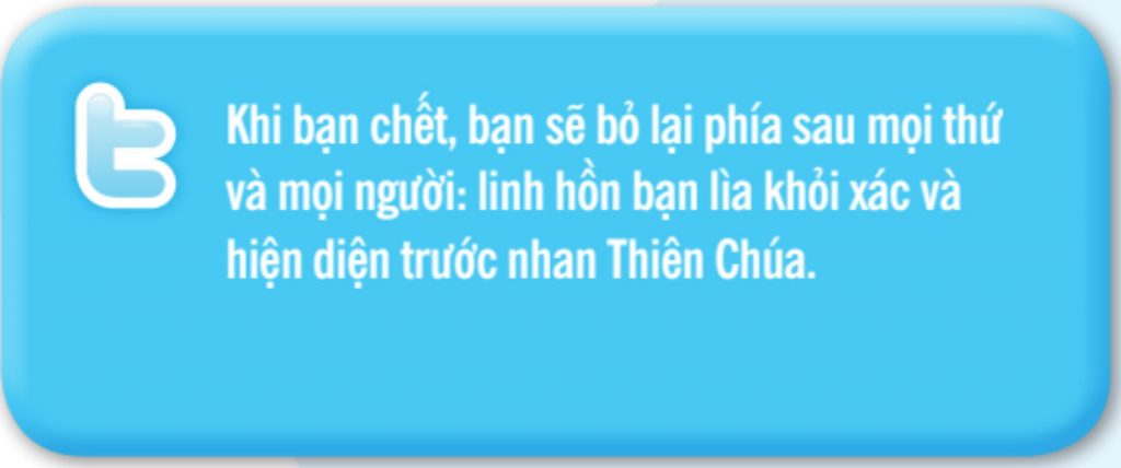Nhiều người trong chúng ta cảm thấy khó tin rằng cái chết là sự kết thúc thật sự, đặc biệt là đối với những người thân yêu của ta. Làm sao tình yêu đó đã thật sự chấm dứt được? Những lúc như vậy, trong sâu thẳm tâm hồn người ta cảm thấy là ắt hẳn phải có điều gì đó hơn nữa. Đức Giêsu đã khẳng định có điều gì đó hơn nữa và hứa hẹn với tất cả các tín hữu rằng chết không phải là hết: sau khi chết, con người sẽ tiếp tục sống với Thiên Chúa trên Thiên đàng. Đức Giêsu đã nói: “Chính Thầy là sự sống lại và là sự sống. Ai tin vào Thầy, thì dù đã chết, cũng sẽ được sống. Ai sống và tin vào Thầy, sẽ không bao giờ phải chết.” (Ga 11, 25-26).