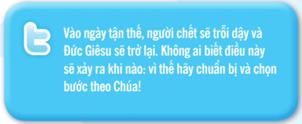 Nếu bạn nghiền ngẫm những đoạn Kinh Thánh trên, sẽ cảm thấy rằng dường như ta đang sống trong thời sau hết! Tuy nhiên, thiên tai, chiến tranh, và mất đức tin đã luôn luôn có. Điều quan trọng là ta đừng cố giải thích những câu Kinh Thánh đó theo nghĩa đen, hay trình bày rõ ràng về những dấu chỉ bí ẩn của ngày tận thế. Mục đích của chúng là thúc giục ta chuẩn bị sẵn sàng để gặp Đức Giêsu bất kỳ thời điểm nào!