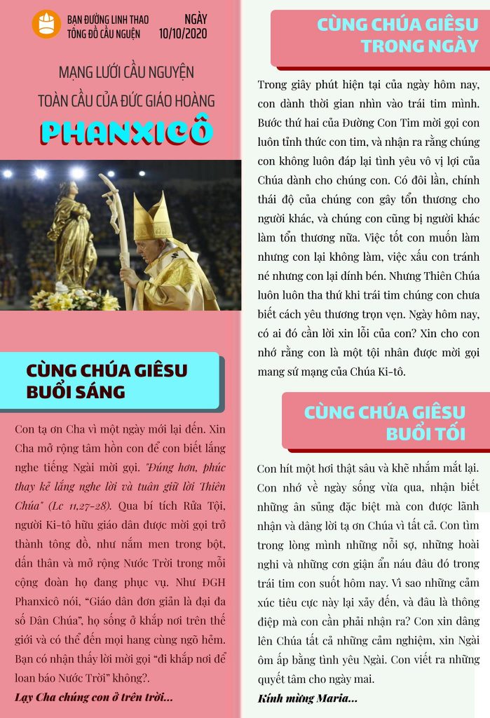 TÔNG ĐỒ CẦU NGUYỆN, NGÀY 10-10-2020