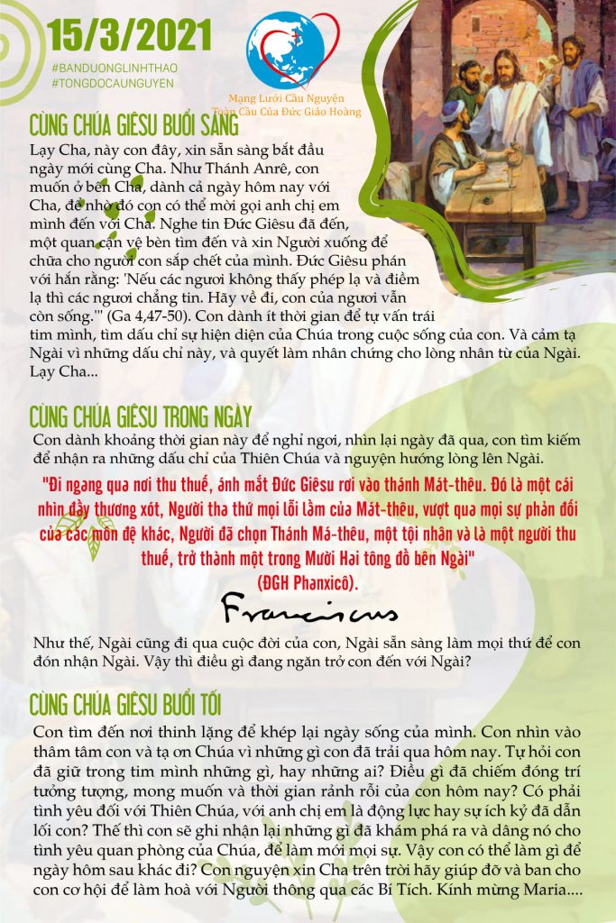 TÔNG ĐỒ CẦU NGUYỆN, NGÀY 15/03/2021
