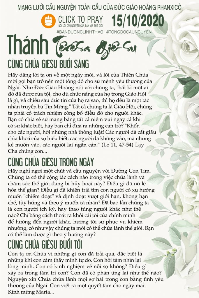 TÔNG ĐỒ CẦU NGUYỆN, NGÀY 15-10-2020