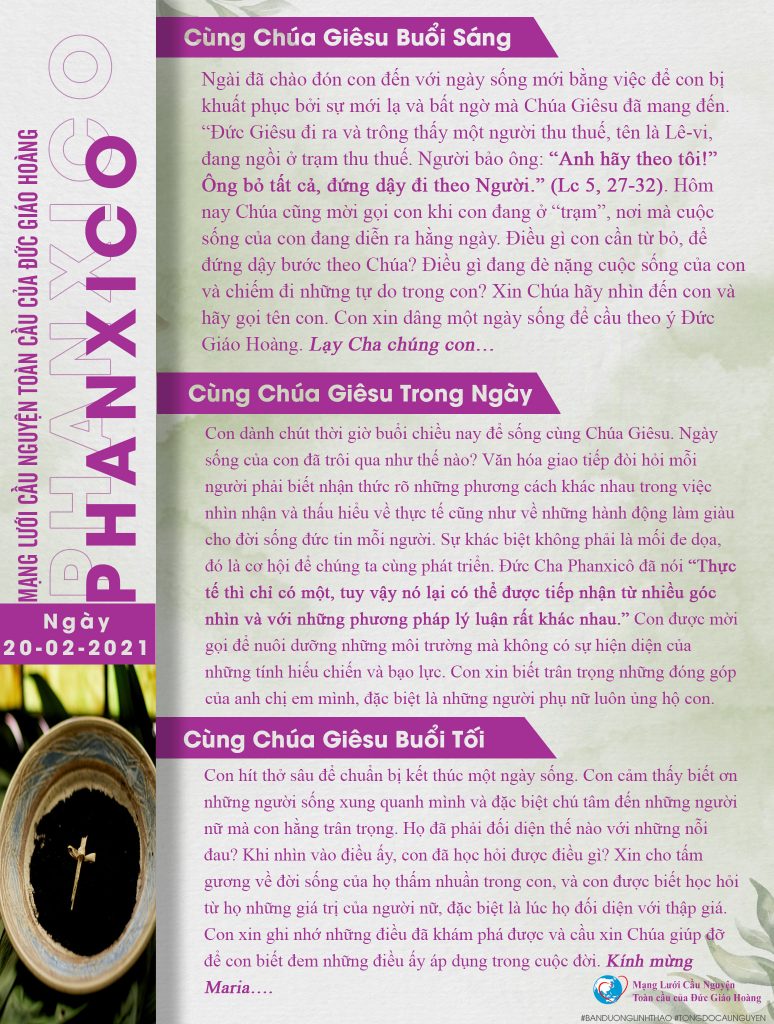 TÔNG ĐỒ CẦU NGUYỆN, NGÀY 20/02/2021