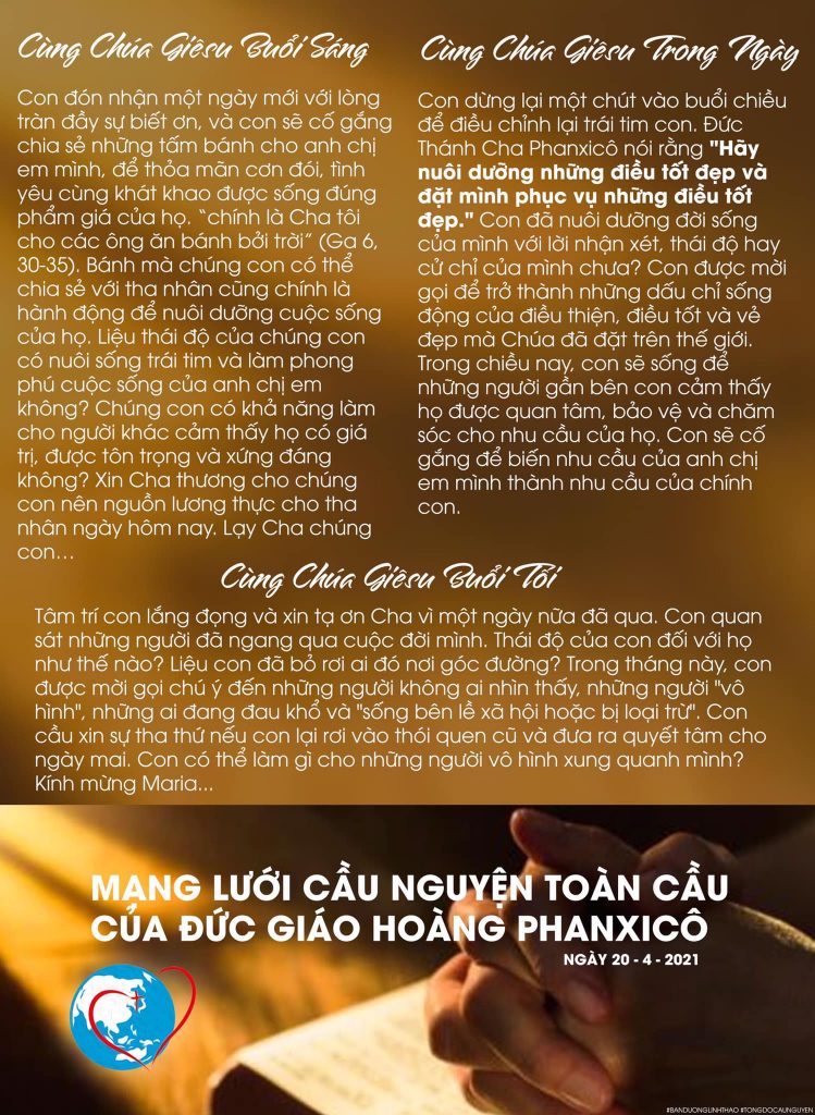 TÔNG ĐỒ CẦU NGUYỆN, NGÀY 20/04/2021