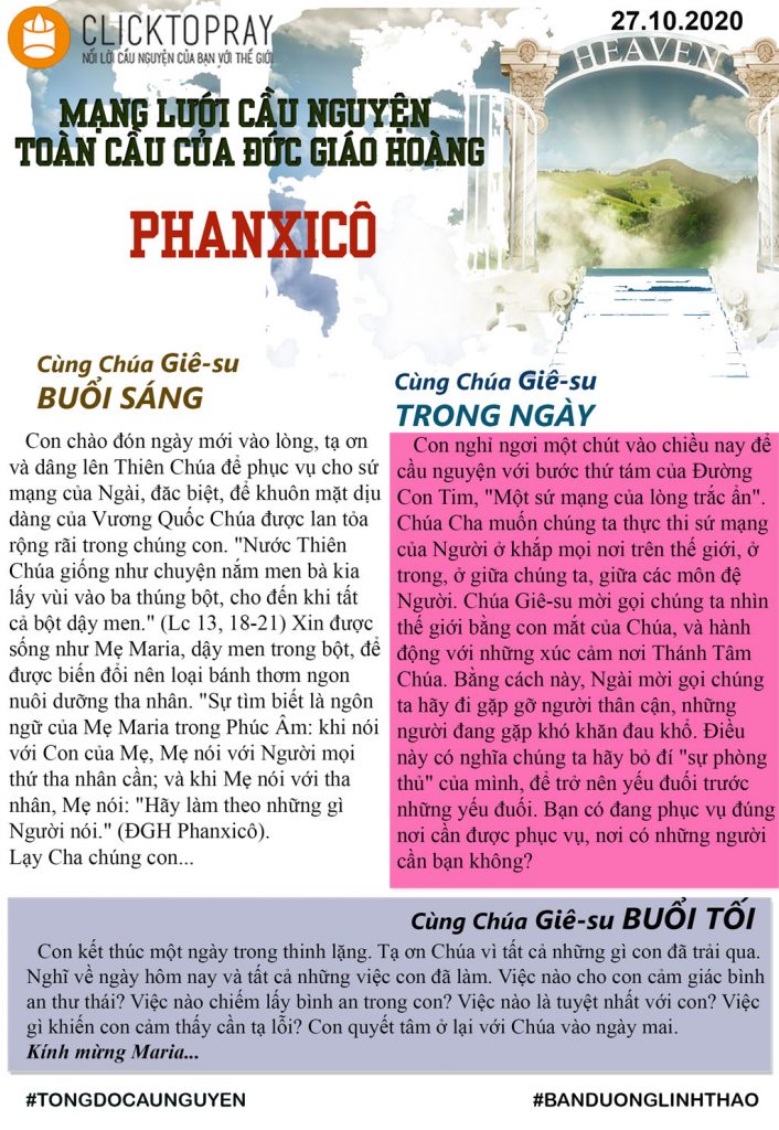 TÔNG ĐỒ CẦU NGUYỆN, NGÀY 27-10-2020