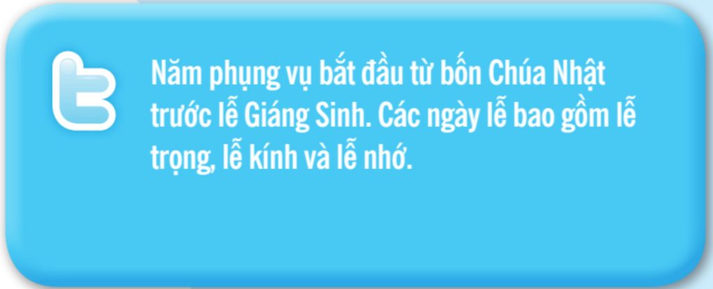 Năm phụng vụ của Hội Thánh không bắt đầu vào ngày 1 tháng 1 nhưng vào cuối tháng 11 hay đầu tháng 12, gồm bốn Chúa Nhật trước lễ Giáng Sinh. Lễ này rất quan trọng nên chúng ta có bốn tuần mùa Vọng để chuẩn bị (xem 3.28).