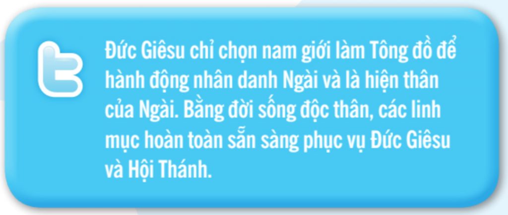 – Chỉ phong chức cho nam giới: GLHTCG 1577; TYGLHTCG 333; YOUCAT 256-257.