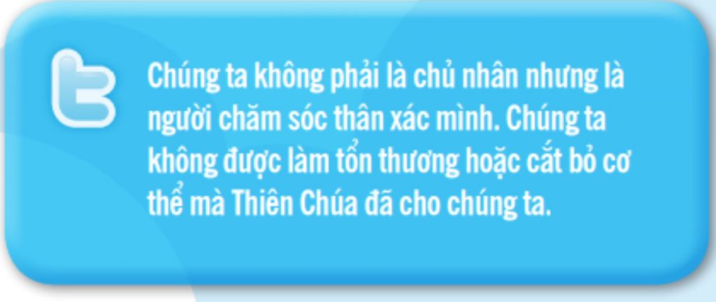 Kinh Thánh dạy rằng: “Hay anh em lại chẳng biết rằng thân xác anh em là Đền Thờ của Thánh Thần sao? Mà Thánh Thần đang ngự trong anh em là Thánh Thần chính Thiên Chúa đã ban cho anh em. Như thế, anh em đâu còn thuộc về mình nữa…