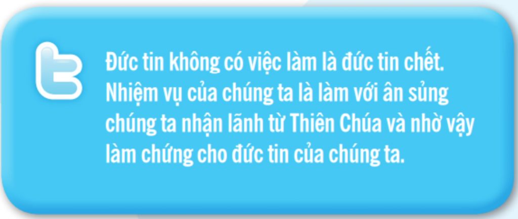 Thánh Giacôbê Tông đồ tóm tắt như sau: “Đức tin không có việc làm là đức tin chết” (Gc 2, 26). Nếu bạn thật sự tin nơi Đức Giêsu, bạn cũng muốn làm những gì Ngài muốn: yêu Chúa và tha nhân bằng cách giữ các điều răn (xem 4.7). Khi chúng ta nói mình có đức tin nơi Thiên Chúa nhưng không cố gắng vâng phục Ngài, đức tin của ta có giá trị gì không? Sự chọn lựa có niềm tin nơi Đức Giêsu phải tỏ hiện trong cuộc đời bạn. Nếu không thì bạn không thực sự tin!