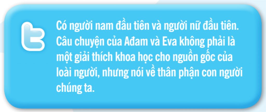 Kinh Thánh kể cho ta việc tạo dựng nên Ađam và Eva, người nam và nữ đầu tiên. Thật ra có hai câu chuyện tạo dựng khác nhau, câu chuyện này tiếp sau câu chuyện kia (St 1, 26-28; 2, 7-8, 18-24), Điều đó cho thấy rằng chúng ta không thể tiếp nhận và diễn tả những điều đã xảy ra theo nghĩa đen.