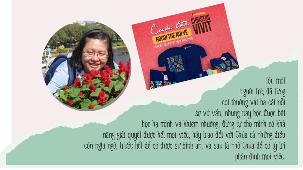 Tôi, một người trẻ, đã từng coi thường vài ba cái nỗi sợ vớ vẩn, nhưng nay học được bài học hạ mình và khiêm nhường, đừng tự cho mình có khả năng giải quyết được hết mọi việc, hãy trao đổi với Chúa cả những điều còn nghi ngờ, trước hết để có được sự bình an, và sau là nhờ Chúa để có lý trí phân định mọi việc.