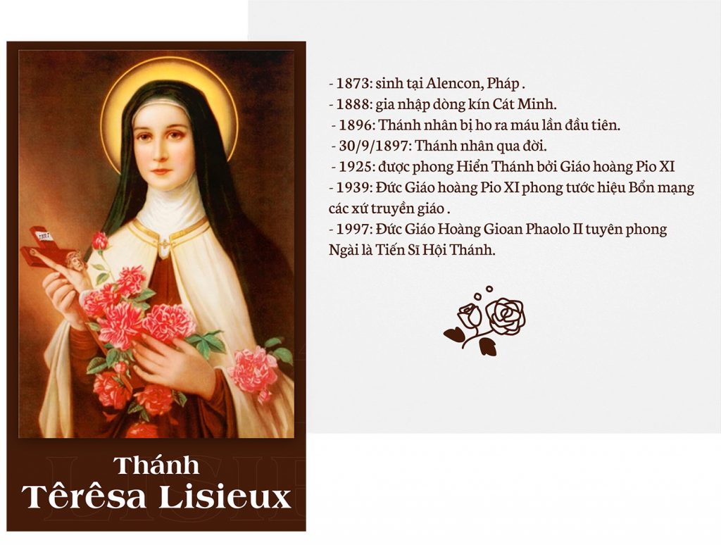 Đối lập hình ảnh với một Đại Thánh sáng lập dòng tu, cải cách lối sống, mở mang giáo dục,… là một vị Thánh bé nhỏ, “hậu bối” với thánh Têrêsa Avila tới 300 năm, cùng là đan sĩ dòng Cát Minh. Đó là thánh Têrêsa Lisieux (1873 -1879). Đây là vị Thánh qua đời rất trẻ, khi chỉ mới 24 tuổi. Ngài chỉ sống trong bốn bức tường của dòng kín. Nhưng sau khi mất, người ta vô tình đọc được hồi ký “Truyện về cuộc đời” của Ngài, được xuất bản một năm sau đó với tựa đề “Truyện một tâm hồn”, cả thế giới phải ngã mũ thán phục về tư tưởng và cuộc đời của Ngài.
