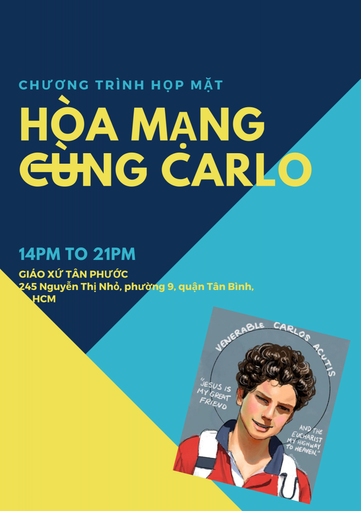 Mừng lễ phong Chân Phước cho Đấng Đáng Kính Carlo Acutis, Ban Mục vụ Giới trẻ TGP Sài Gòn tổ chức chương trình gặp gỡ HÒA MẠNG CÙNG CARLO để hiệp thông với Giáo hội Hoàn vũ trong ngày hồng ân này.