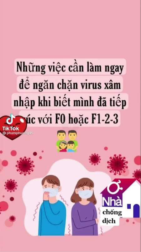 Ở nhà chống dịch Tin tức 21/07/2021 0 557 Những việc cần làm ngay để ngăn chặn virus xâm nhập khi biết mình đã tiếp xúc với F0, F1,… Nguồn: Internet