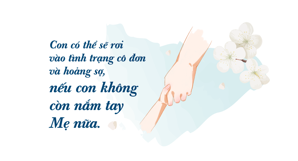 Mẹ ơi! Hôm qua, con chứng kiến một hình ảnh xúc động khiến con nghĩ tới tương quan giữa Mẹ và con. Một em bé kháu khỉnh nắm tay mẹ, cậu đi giữa đám đông mà chẳng lo lắng gì. Trên tay cậu là chiếc kẹo mút, và cứ thế, hai mẹ con ung dung, vui vẻ và đầm ấm đi bên nhau. Cũng thế, con tin Mẹ đang nắm tay con, dìu dắt con trên đường đời. Cậu bé chắc hẳn sẽ hoảng sợ, khóc lóc nếu để tuột mất tay mẹ cậu. Con có thể sẽ rơi vào tình trạng cô đơn và hoảng sợ, nếu con không còn nắm tay Mẹ nữa.
